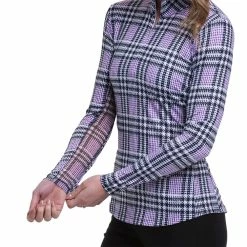 EP NY EP New York Glen Plaid Black Multi Mock Womens Golf 1/4 Zip