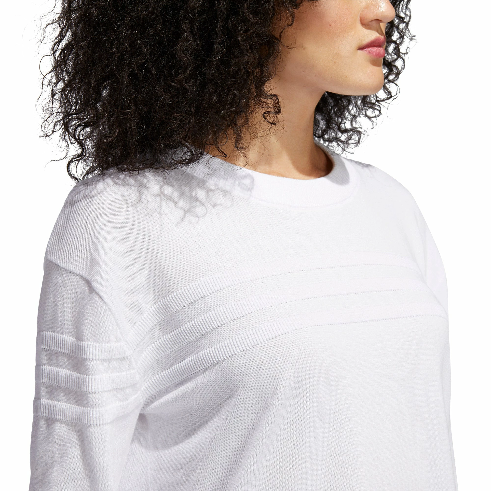 Get clean, classic styling for cool rounds of golf with the Adidas 3-Stripes Golf Sweater. This sweater supports natural movement and comfort thanks to its soft knit cotton so that you can swing without restriction. The tonal ribbed 3-stripes run across the chest and one sleeve to provide some subtle styling for your next round.