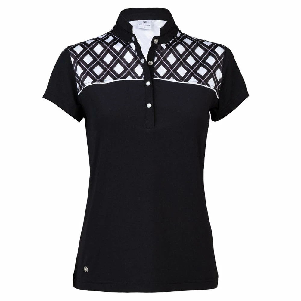Get unique styling with the Daily Sports Brie Golf Polo. This polo features a small stand-up collar with Mother of Pearl snaps and a graphic print along the front shoulders and upper back for a unique look.