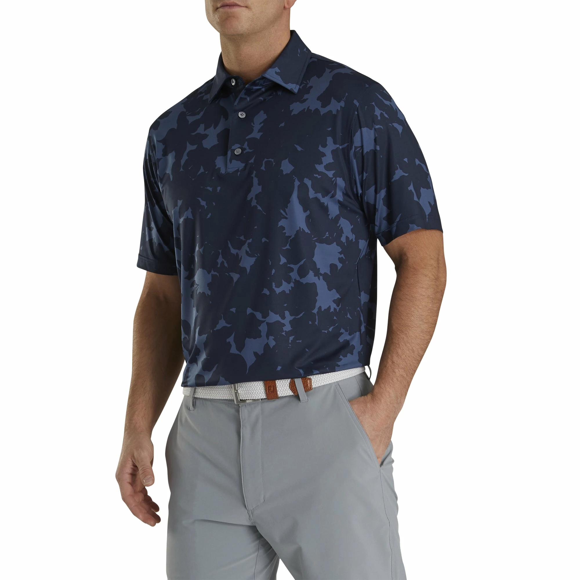 Stay dry and comfortable during your round with the FootJoy Lisle Camo Self Collar Polo. This polo is built a high-performance ProDry fabrication that will quickly wick away moisture to keep you dry and comfortable and an anti-microbial finish will prevent odor buildup to keep you smelling fresh. A locked stitched hem provides a tailored look and double stitched seams make the Lisle Camo polo highly durable. There is an extra-long back shirt tail which makes it super easy to tuck in.