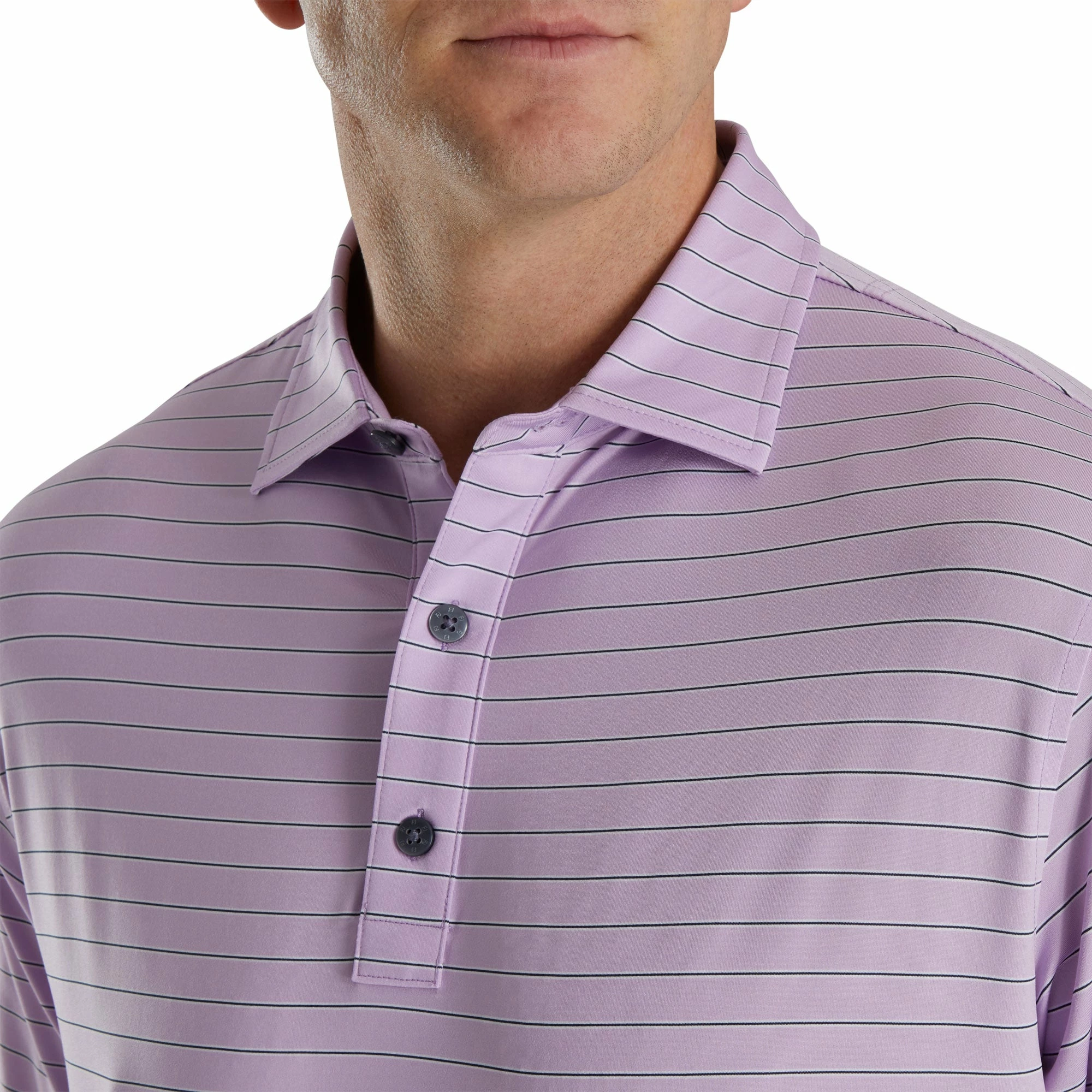 Level up your golf style with the FootJoy Triple Pinstripe Lisle Golf Polo. The Triple Pinstripe has been built with the FootJoy Exclusive ProDry fabrication that will quickly pull away moisture from the body to keep you dry and comfortable throughout the round and the anti-microbial technology prevents odor build up to keep you smelling fresh. There are double stitched seams for added durability and the lock stitched hem provides a tailored look that works with the stylish stripe pattern and FJ logo on the back to have you looking good on and off the golf course.