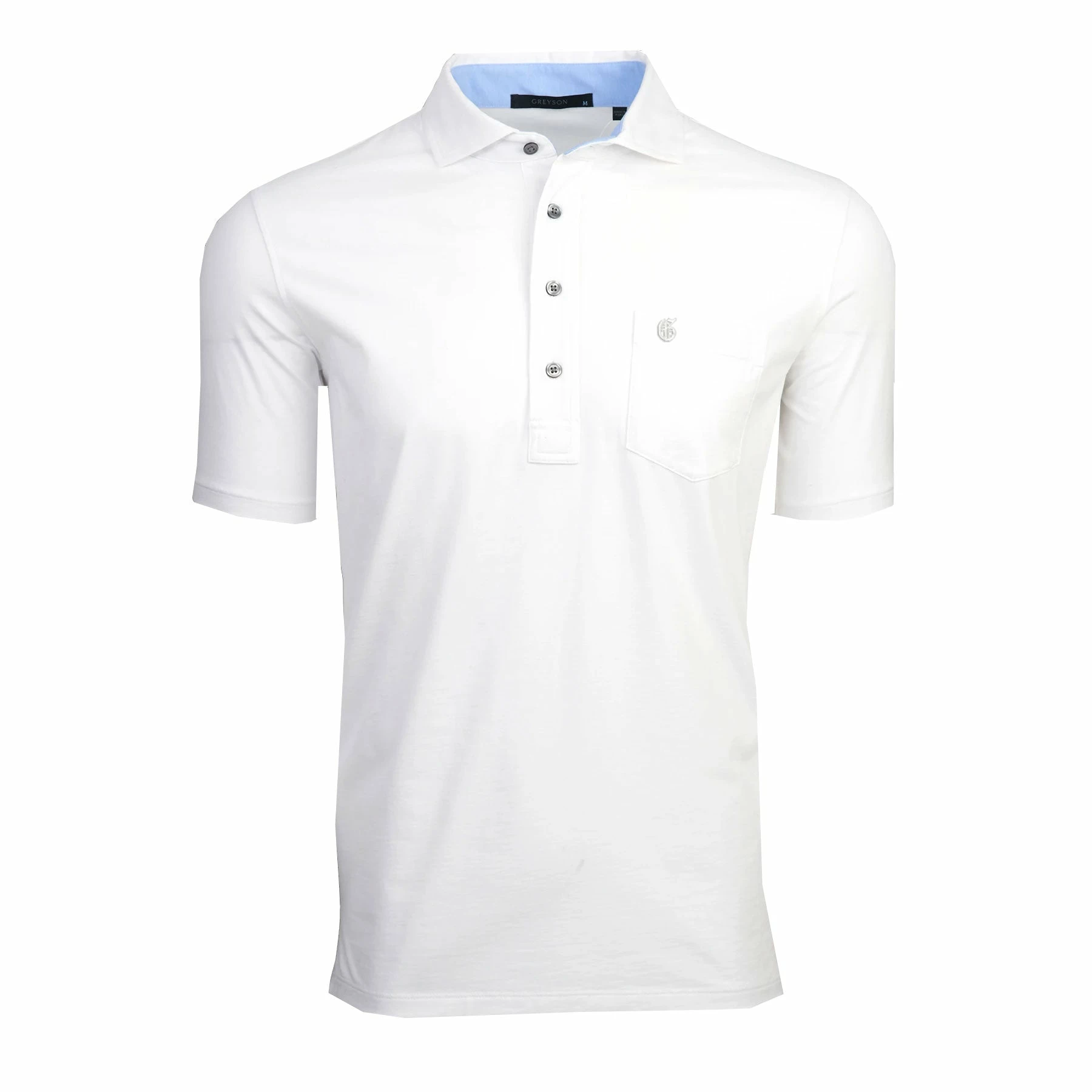 The Greyson Spirit Mens Golf Polo is a classic polo with an elegant twist. The polo is moisture-wicking and offers plenty of stretch, making it the perfect shirt for the golf course and beyond. It is finished with the gothic Greyson G embroidered on the left chest pocket and a four-button placket.