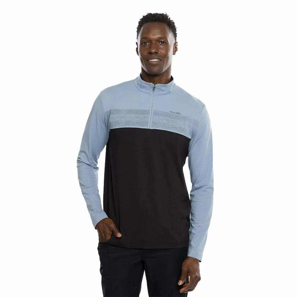 When you need an extra layer, the TravisMathew Out All Night Mens Golf 1/4 Zip has you covered. This pullover is perfect for the morning commute or chilly days out on the course. It features a 1/4 zip placket so you can easily adjust your coverage as the weather changes and a color-blocked design with textured chest stripes for a trendy look.