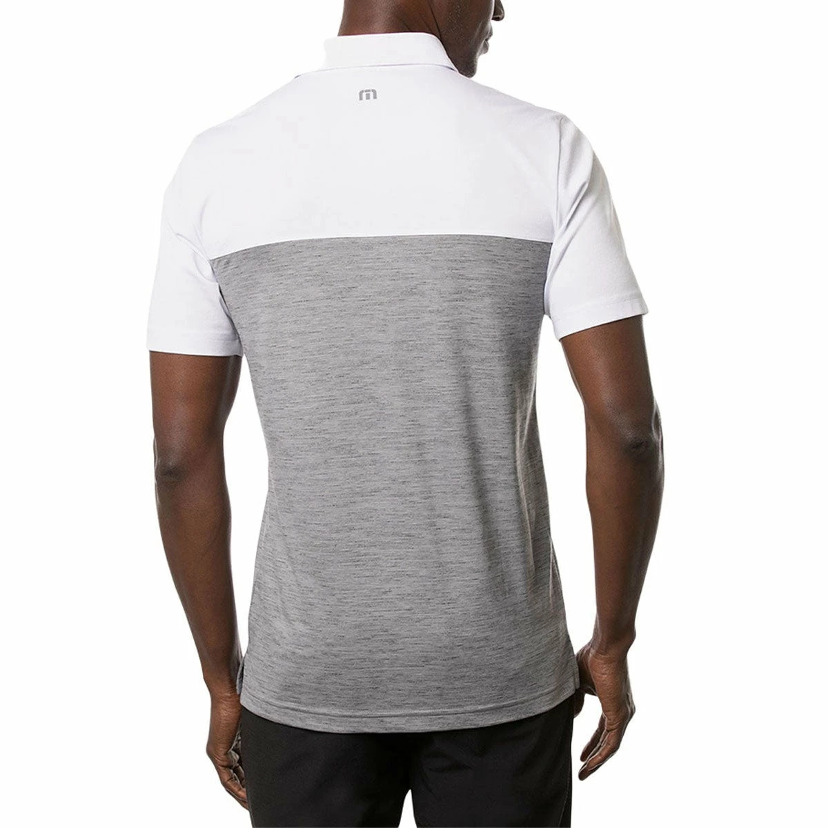 Level up your golf styling with the TravisMathew See Ya Golf Polo. The See Ya is built with a polyester/cotton blend with an enhanced four-way stretch that gives golfers tons of comfort throughout the golf swing. This polo is moisture wicking to pull sweat from the body to keep you dry and comfortable during the round. There are built-in collar stays that will ensure the collar maintains its shape for a stylish look. The color block style with TM wordmark on left chest and TM logo on the back of the neck to have you looking good on and off the golf course.